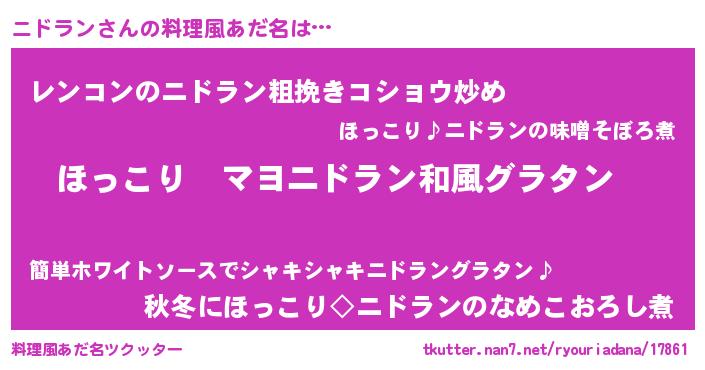 | 意味不明あだ名 | 『住所不定無職ニドラン(91歳)』 |