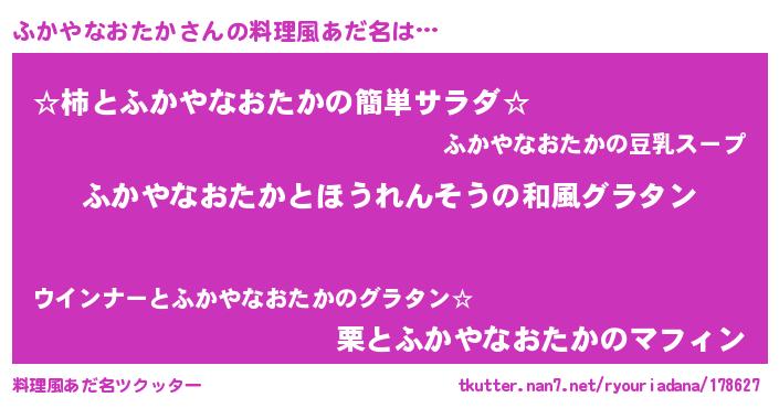 | ヘコむあだ名 | 『ふかぷりん』『豆乳』『ふかにゅー』 |