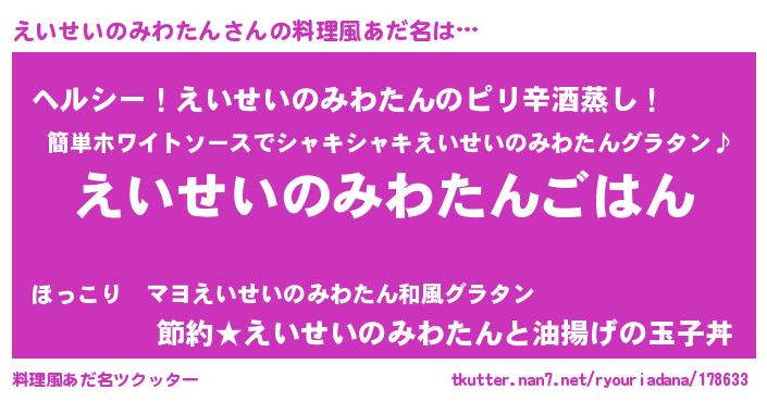 | 欧米人風あだ名 | 『トリンドルえいせいのみわたん』 |