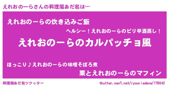 | 男性向けラノベタイトル風あだ名 | 『魔弾の王とえれおのーら』 |