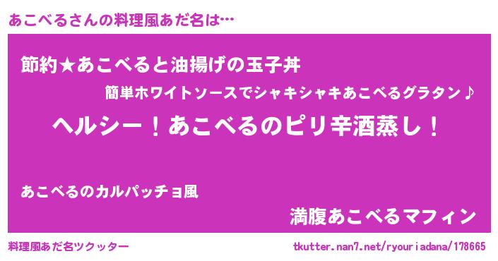 | 意味不明あだ名 | 『自称あこべる』『ペロリンあこべる』 |