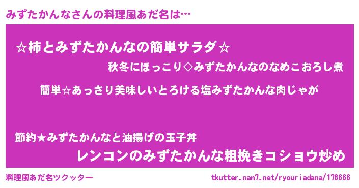 | ヒーロー風カッコイイあだ名 | 『ネオミズタカンナ』『仮面ミズダー』 |