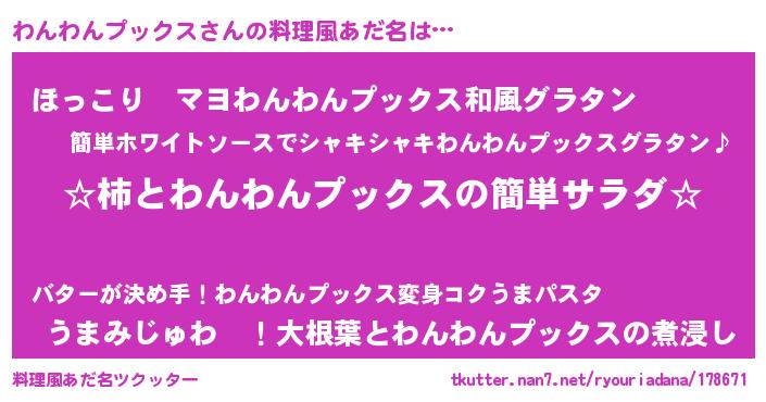 | ピコ太郎風あだ名 | 『ピワ次郎』『ワン二郎』『ワワ太郎』 |