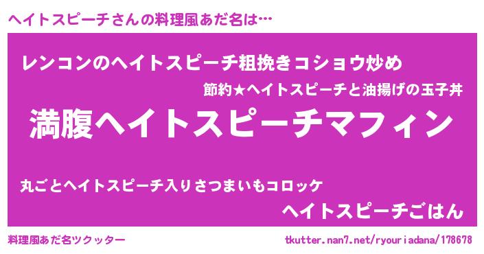 | ヘコむあだ名 | 『ヘイトスピーチ(小並感)』『ヘイふぇ~』 |