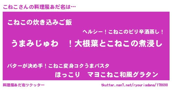 | 女子向けラノベタイトル風あだ名 | 『こねこの婚約者』『こねこ恋絵巻』 |