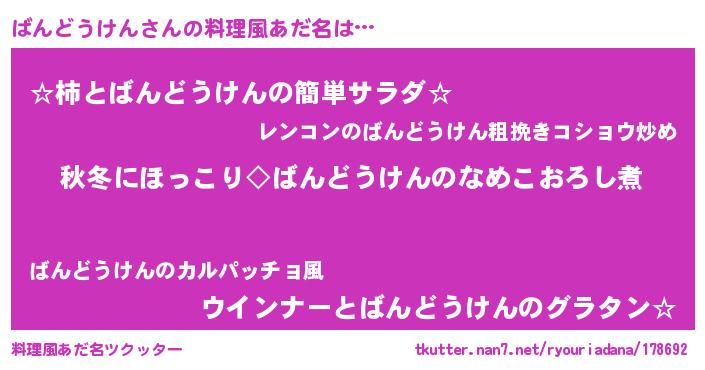 | 意味不明あだ名 | 『ばんどうけんフォーエバー』 |