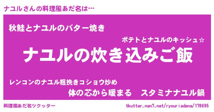 | ヘコむあだ名 | 『ナユル(小並感)』『なまこ酢』 |