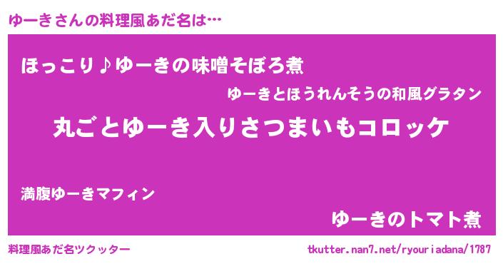 | 男性向けラノベタイトル風あだ名 | 『魔弾の王とゆーき』『ゆーきの憂鬱』 |