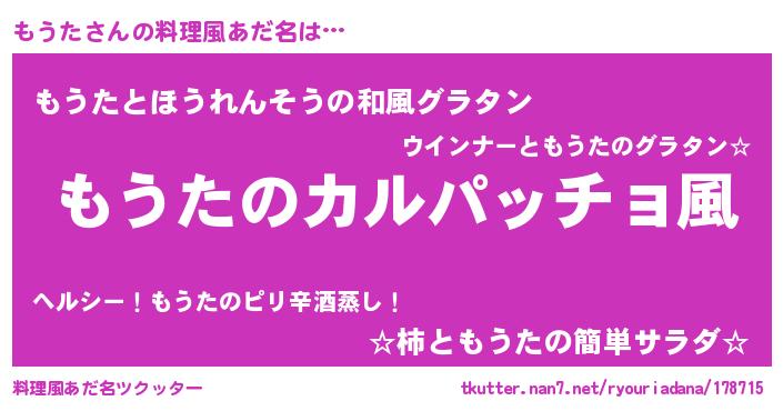 | 意味不明あだ名 | 『住所不定無職もうた(12歳)』『自称もうた』 |