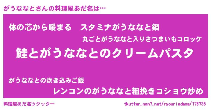 | 男性向けラノベタイトル風あだ名 | 『ノーゲーム・ノーガウナナト』 |