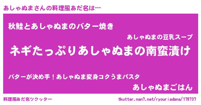 | 男性向けラノベタイトル風あだ名 | 『アシャヌマアートオンライン』 |