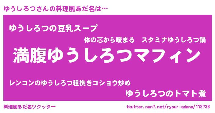| 意味不明あだ名 | 『永久保存ゆうしろつ』『自称ゆうしろつ』 |