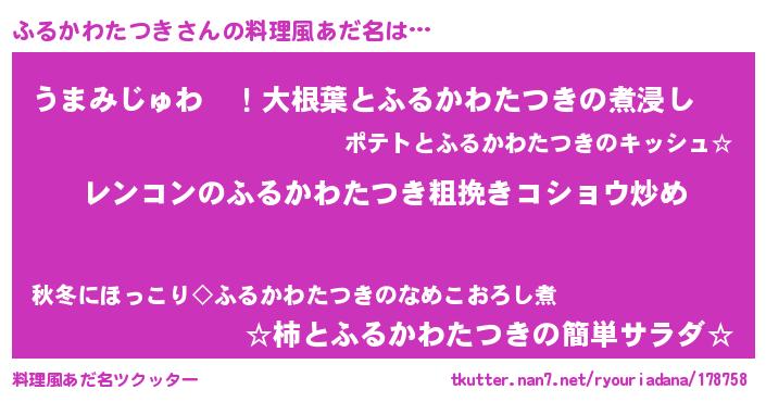 | 意味不明あだ名 | 『自称ふるかわたつき』 |