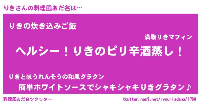 | 男性向けラノベタイトル風あだ名 | 『Re:りきから始める異世界生活』 |