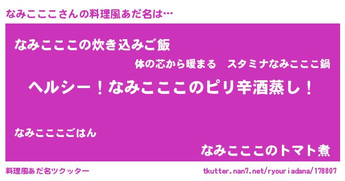 | 意味不明あだ名 | 『自称なみこここ』『ペロリンなみこここ』 |