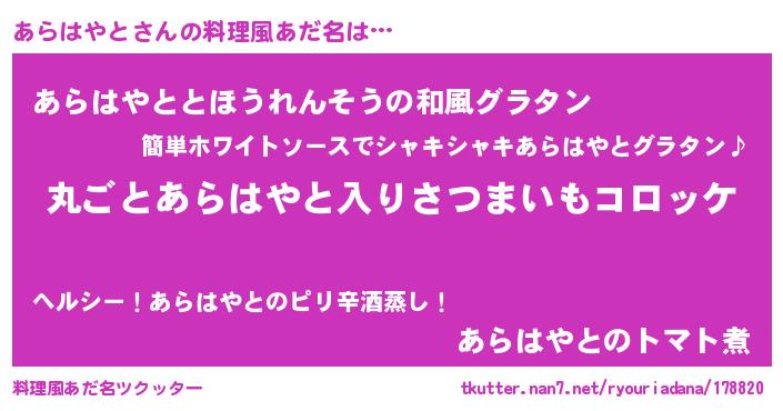 | 意味不明あだ名 | 『住所不定無職あらはやと(7歳)』 |