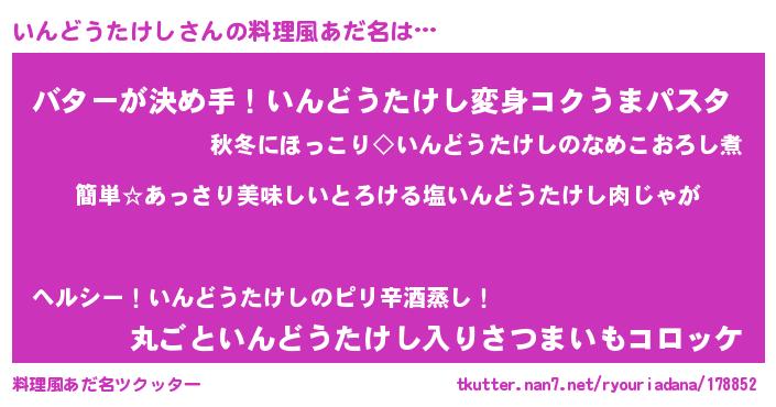 | ヘコむあだ名 | 『いんどうたけし(遠い目)』『いんっぺ』 |