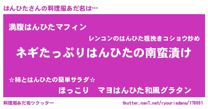 | 男性向けラノベタイトル風あだ名 | 『ハンヒタアートオンライン』 |