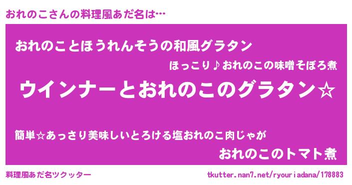 | ヘコむあだ名 | 『なまこ酢』『おれっふぃ~』 |