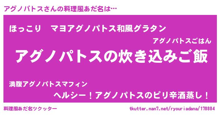 | ヘコむあだ名 | 『アグノパトス(小並感)』『アグぷりん』 |