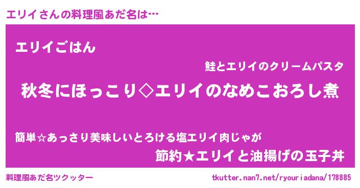 | ヘコむあだ名 | 『エリにゅー』『エリイ(遠い目)』 |