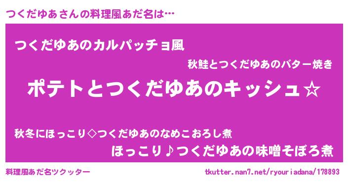 | ポケモン風あだ名 | 『ヒツクダユア』『ツークイ』 |