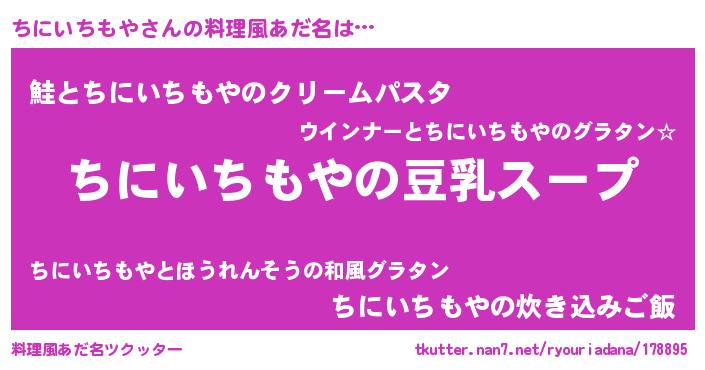 | 胡散臭い通販商品みたいなあだ名 | 『信頼と実績のサプリメント…その名も「ちにいちもや」』 |