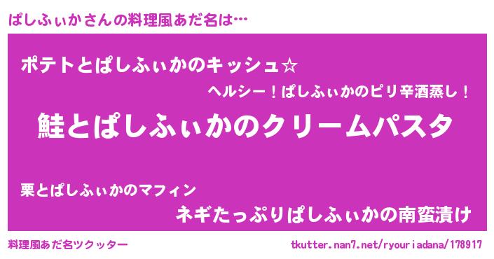 | ヒーロー風カッコイイあだ名 | 『慈愛の使者ぱしふぃか』『暗黒騎士パシ』 |