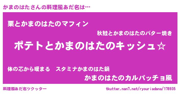 | 男性向けラノベタイトル風あだ名 | 『かまのはたの嫁は女の子じゃないと思った?』 |