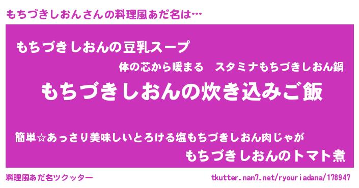 | 意味不明あだ名 | 『とにかく怪しいもちづきしおん』 |
