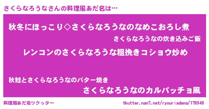 | 意味不明あだ名 | 『自称さくらなろうな』 |