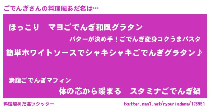 | 女子向けラノベタイトル風あだ名 | 『ごでんぎ様がみてる』『ごでんぎ恋絵巻』 |