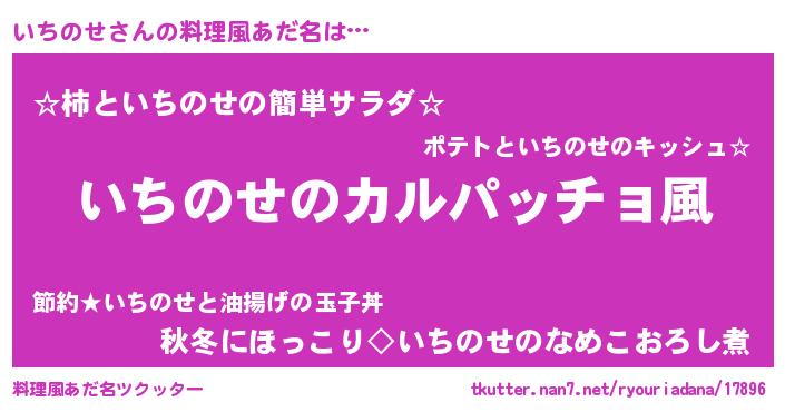 | 女子向けラノベタイトル風あだ名 | 『いちのせが死なない童話 林檎のいちのせの診療簿』 |