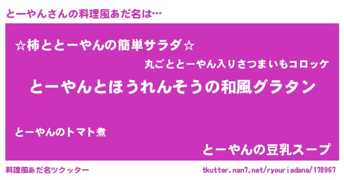 | ヘコむあだ名 | 『とーぷりん』『なまこ酢』 |