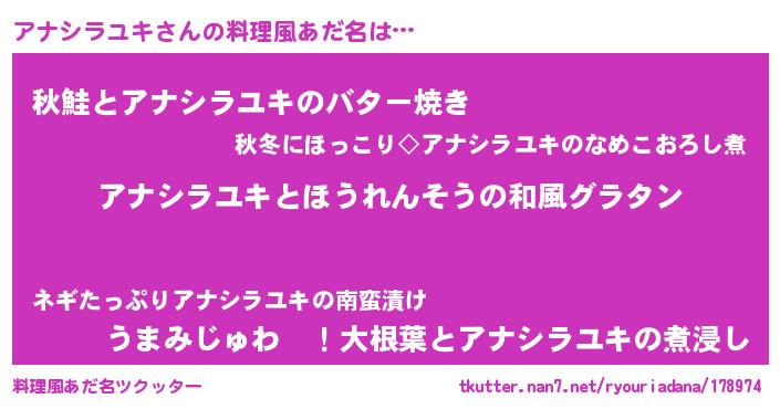 | ヒーロー風カッコイイあだ名 | 『ネオアナシラユキ』『仮面アナダー』 |