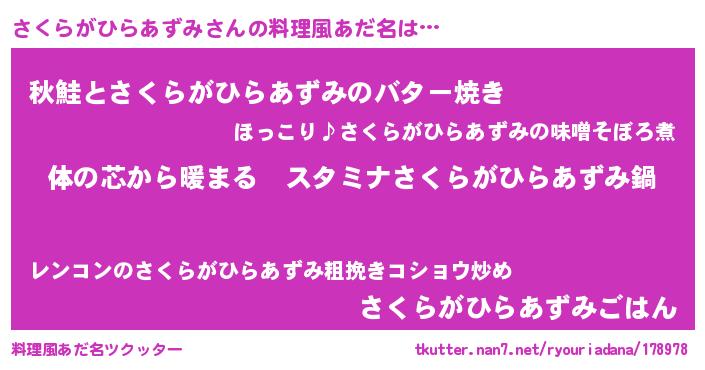 | 意味不明あだ名 | 『さくらがひらあずみフォーエバー』 |