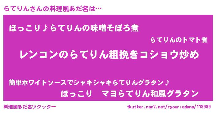 | 女子向けラノベタイトル風あだ名 | 『らてりんなんてお断りですっ。』 |