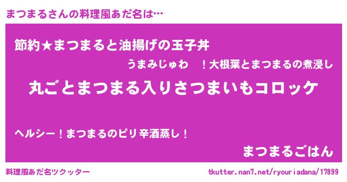 | 男性向けラノベタイトル風あだ名 | 『この素晴らしい世界にまつまるを!』 |