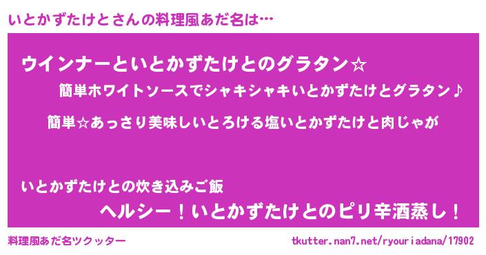 | 意味不明あだ名 | 『永久保存いとかずたけと』 |