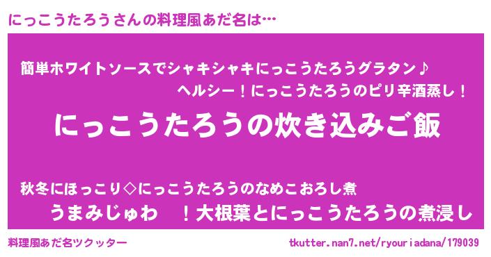 | 男性向けラノベタイトル風あだ名 | 『うちのにっこうたろうが世界を掌握している!』 |