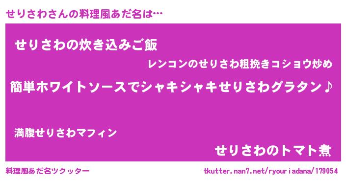 | 男性向けラノベタイトル風あだ名 | 『せりさわの嫁は女の子じゃないと思った?』 |