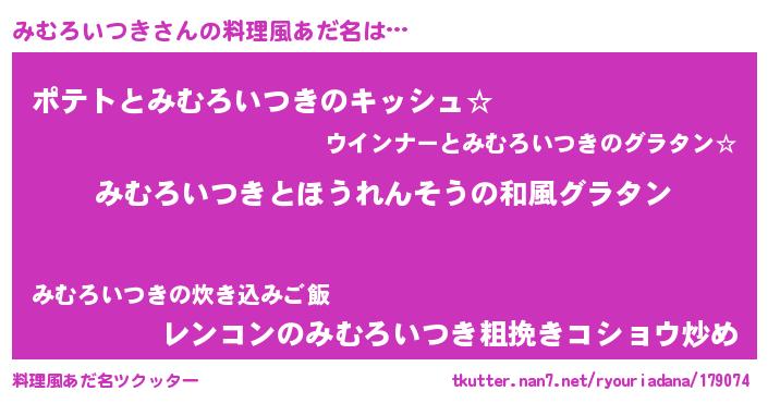 | 男性向けラノベタイトル風あだ名 | 『みむろいつき~年齢イコール彼女いない歴の魔法使い~』 |