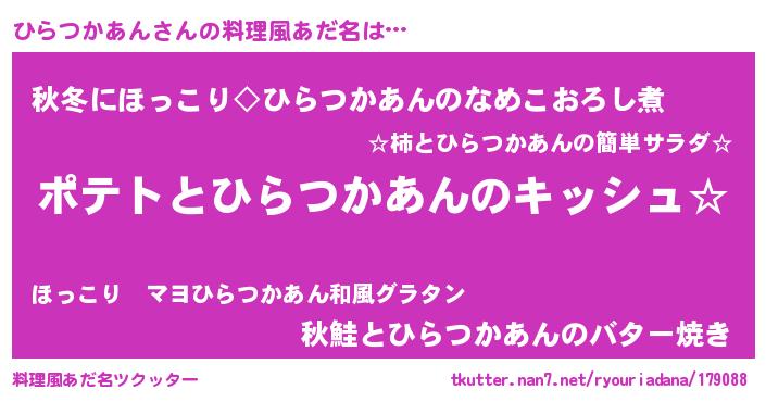 | 女子向けラノベタイトル風あだ名 | 『ひらつかあんの卵を拾いまして』 |