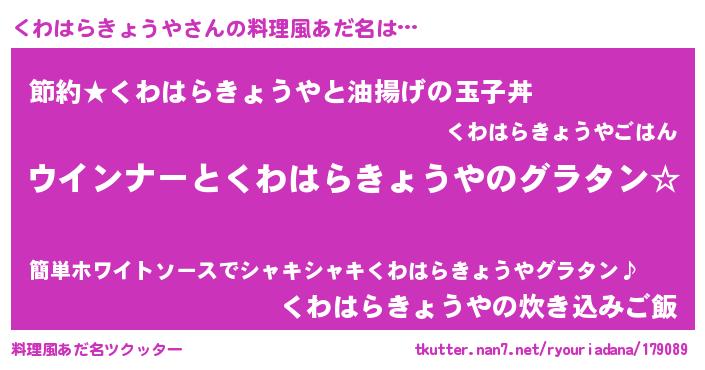 | 意味不明あだ名 | 『くわはらきょうやフォーエバー』 |
