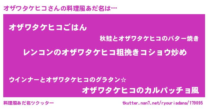 | 欧米人風あだ名 | 『ケンブリッジオザワタケヒコ』 |