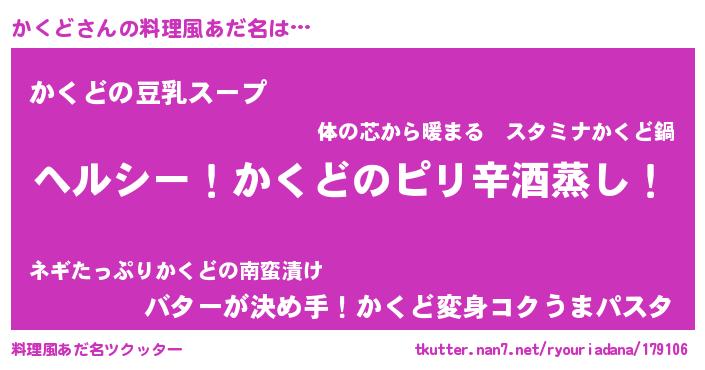 | 胡散臭い通販商品みたいなあだ名 | 『芸能人もオススメする高麗人参…その名も「かくど」』 |