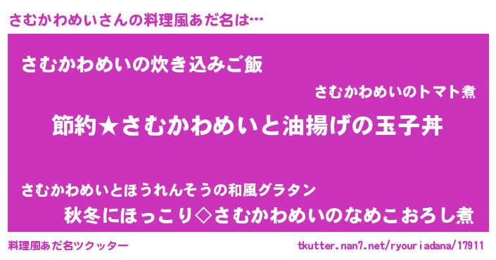 | 胡散臭い通販商品みたいなあだ名 | 『モテモテ間違いなし水晶球…その名も「さむかわめい」』 |