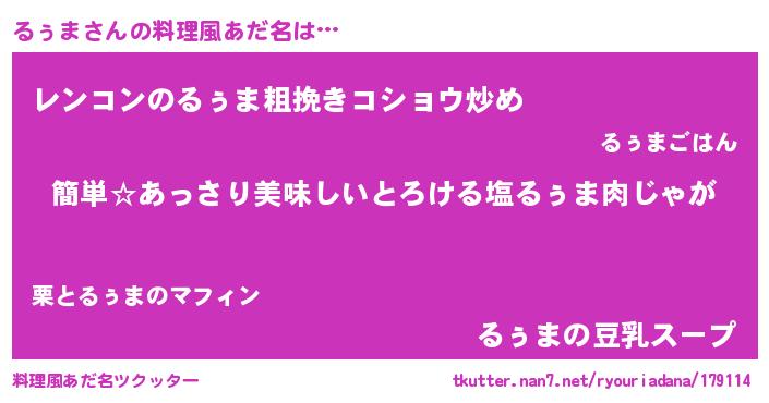 | ヘコむあだ名 | 『るぅま(苦笑)』『るぅ太郎』 |