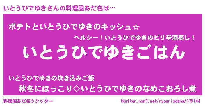 | ポケモン風あだ名 | 『イトキング』『ヒイトウヒデユキ』 |