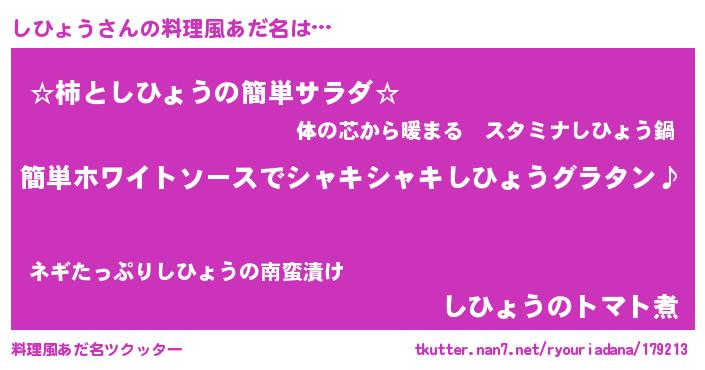 | 男性向けラノベタイトル風あだ名 | 『しひょうの嫁は女の子じゃないと思った?』 |